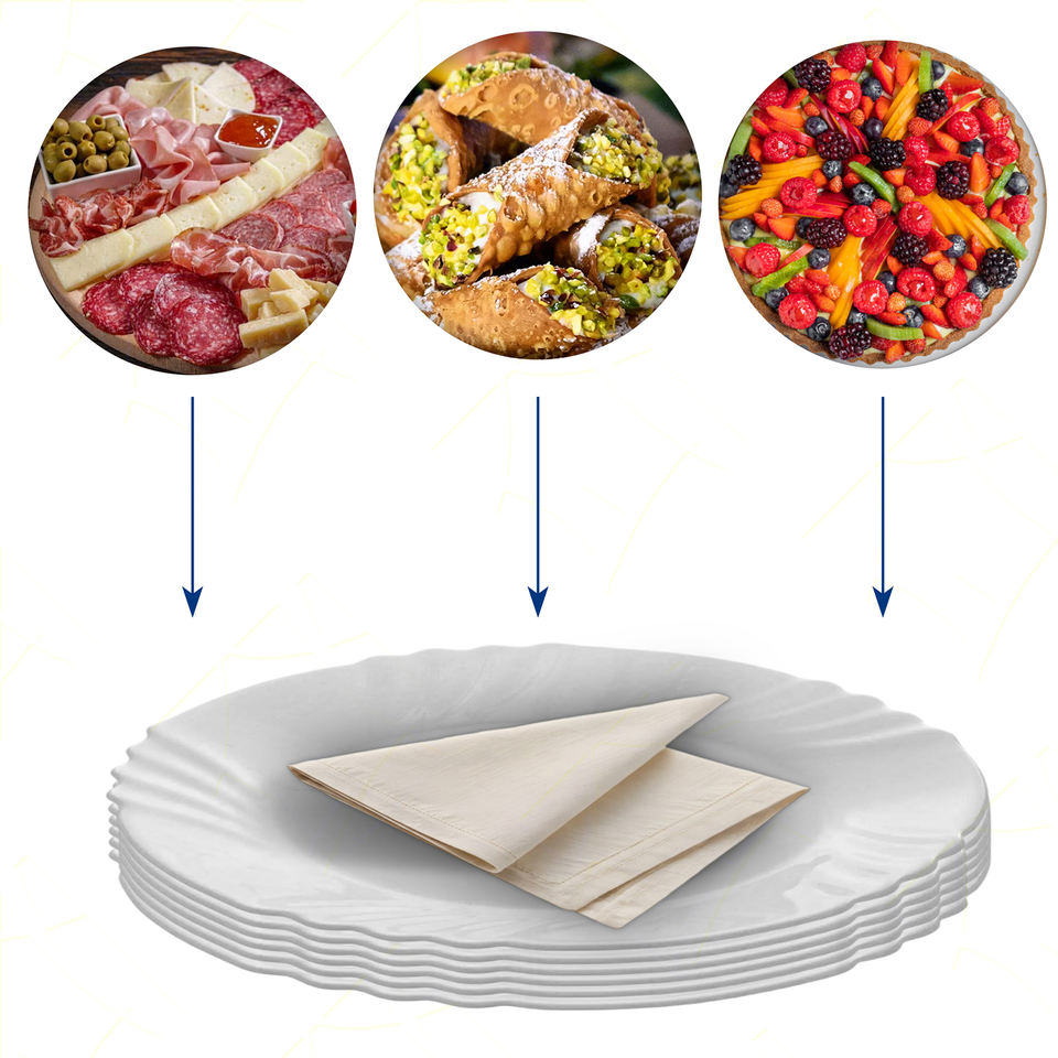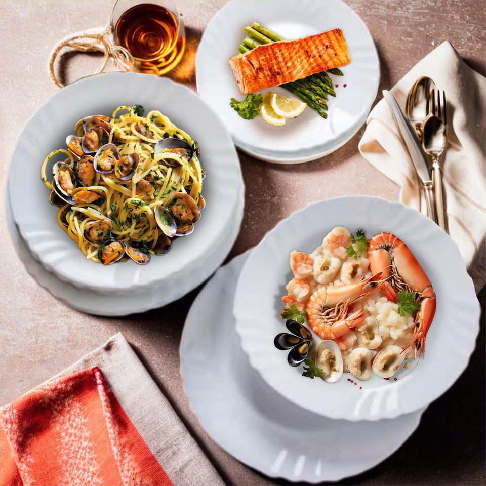 Ebro 6Pcs White Tempered Opal Glass Fruit Plate dia.20Cm With Edge Decoration For Appetizers Second Courses Side Dishes