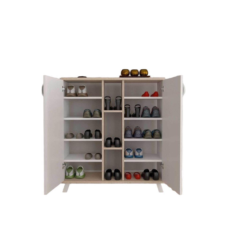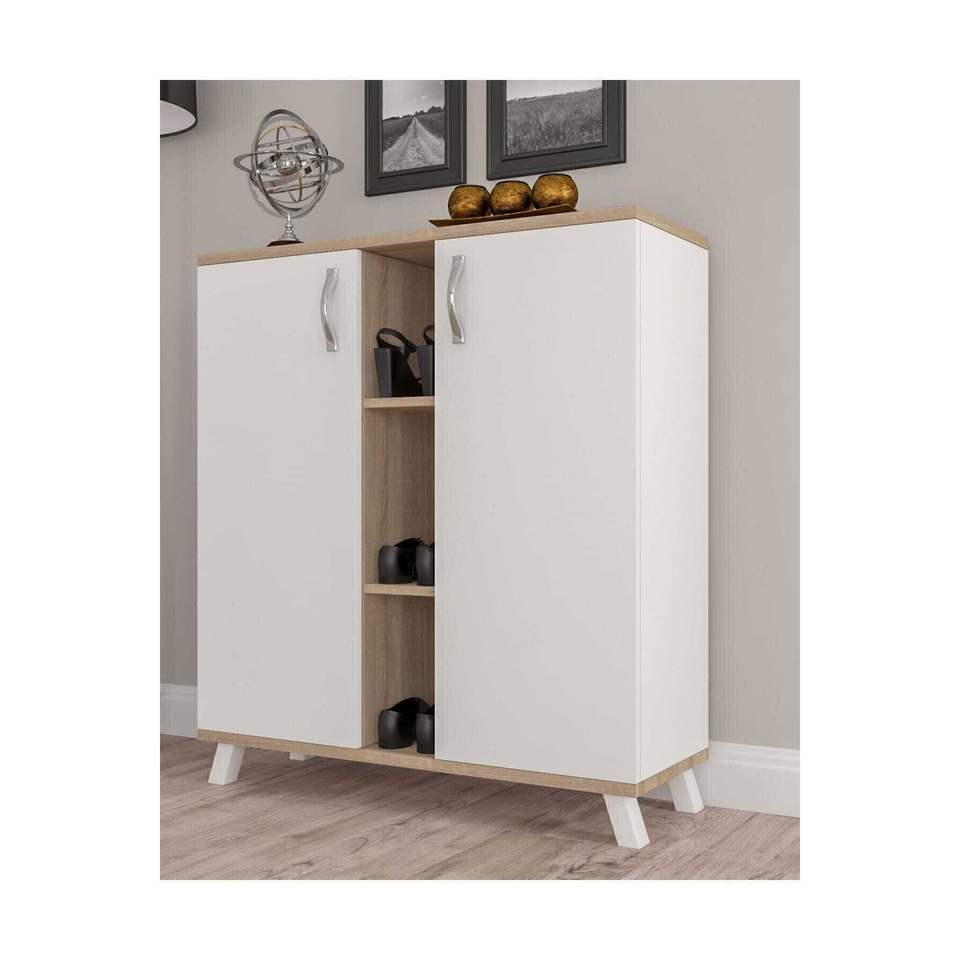 Ecem 5-Tier White Wood Storage Cabinet Multi-Purpose Kitchen Shoe Rack and Spice Organizer