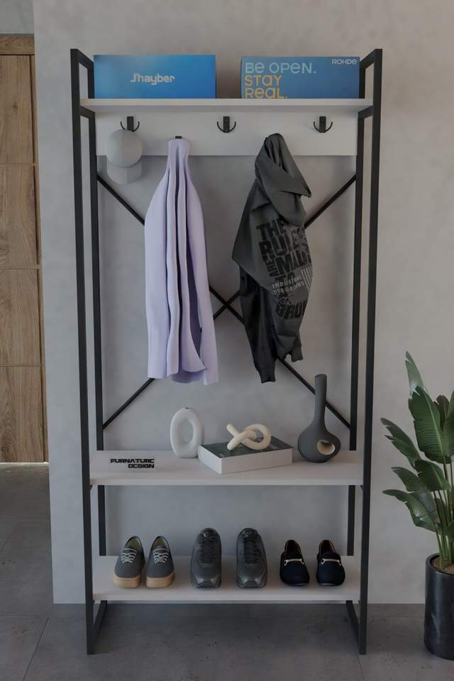 Echo Coat Rack Modern Multifunctional Compact Ergonomic Entryway Organizer Stainless Steel Legs | White Living Room Hotel Gym