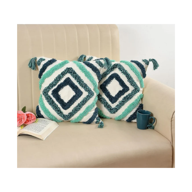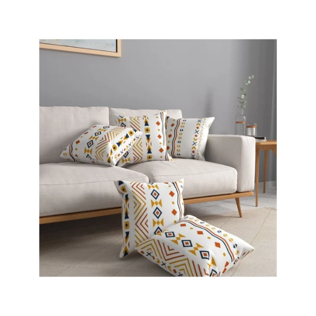 Eco 20x20in 100% Cotton White Embroidered Ajrakh Cushion Using Natural Dyeing For Wholesale Market & OEM Services Quick Delivery