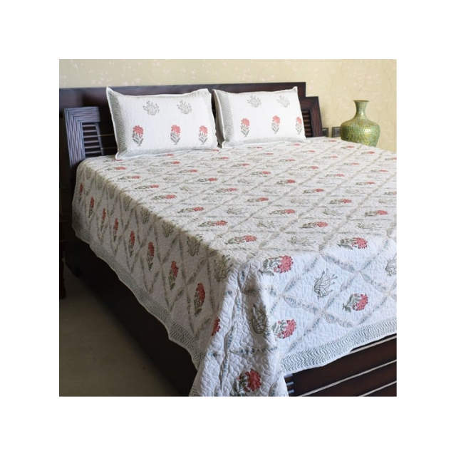 Eco 600TC Pastel Beige Jacquard Damask Pattern Bamboo-Cotton Blend Lightweight Bedspread For Spa And Wellness Homes In India