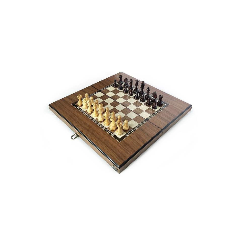 Eco Classic Handmade Checkered Wooden Backgammon and Chess Set