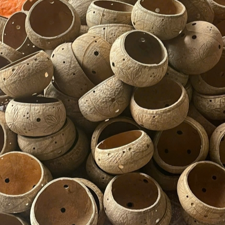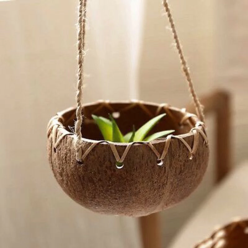 Eco Coconut Shell Plant Pot Recycled Natural Coconut Handicraft Planter Succulent, Herb, Cactus - Handmade Vietnam Export