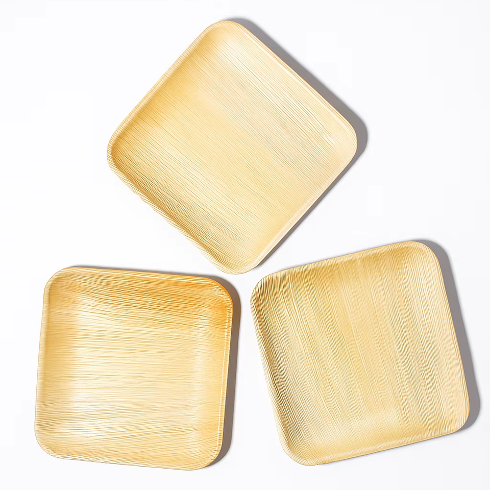 Eco Friendly Reusable 8 Inch Square Palm Leaf Plates Heavy Duty Water Resistant Biodegradable Compostable Tableware for Events
