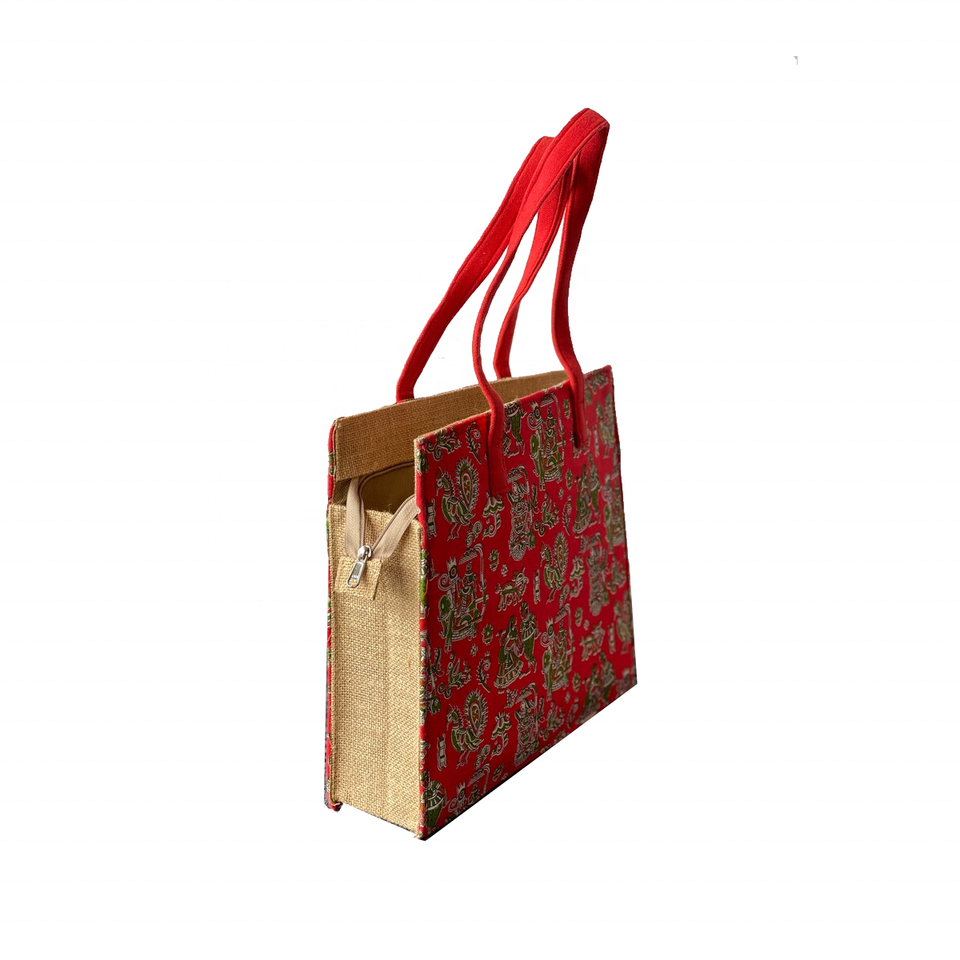 Eco-Friendly 100% Jute Unisex Nice Fashionable Azo-Free Printed Jute Shopping Bag with Competitive Rate Reusable Self Handle