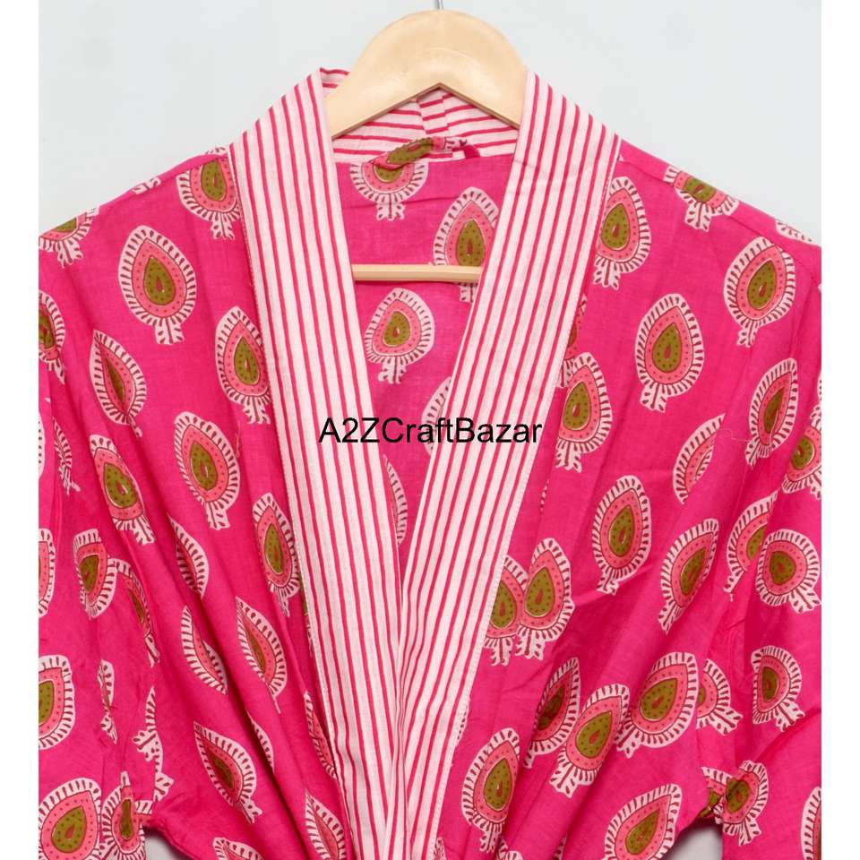 Eco-Friendly 100% Pure Cotton Washable Kimono Robe Dressing Gown Floral Print Bridesmaid Summer Nightwear Comfortable Dress