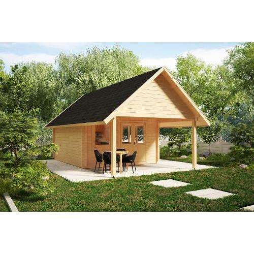 Eco-Friendly 16M² 44MM 'Mark' Wooden Garden Shed with Canopy for Patio & Garden Furniture Easily Assembled