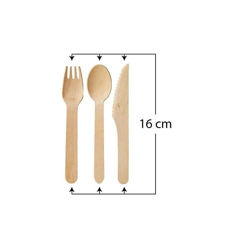 Eco-Friendly 50 Sets of 16cm Organic Birch Wood Cutlery & Napkins Disposable Party Supplies Kit for Picnics & Events