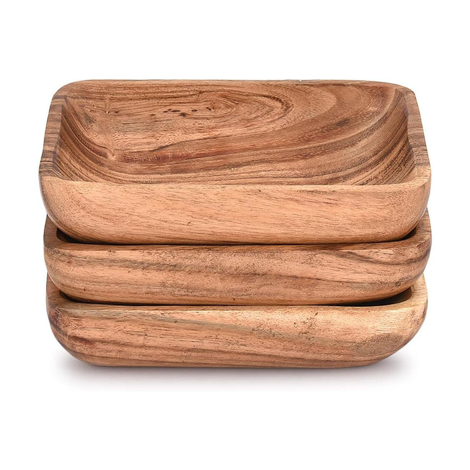 Eco-Friendly Acacia Wood Bowl Set for Fruit Salad Snack Serving Wooden Dining Table Keepsake for Kitchen Use for Parties