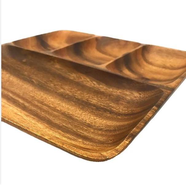 Eco Friendly Acacia Wood Platter & Tray Wooden Charcuteries Board Thick Wooden Serving Platter with 4 Compartments for Serving