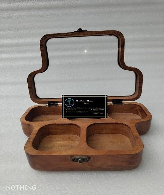 Eco-Friendly Acacia Wood Salt Spice Dry Fruit Storage Box with Lid for Kitchen Seasoning Organization