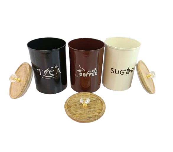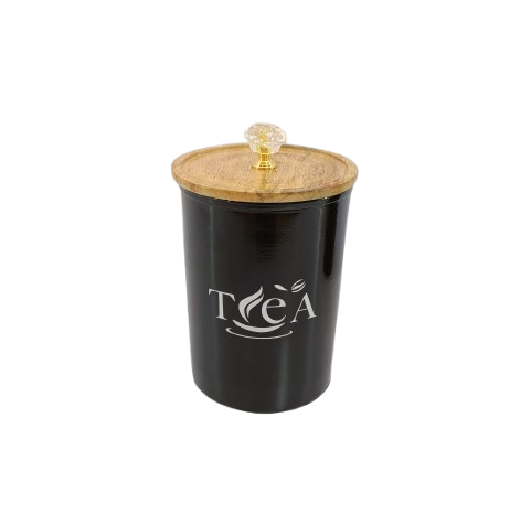 Eco-Friendly BPA-Free Metal Tea Canister Wooden Airtight Lid 500g Kitchen Storage Box for Pantry Food Beverage Home/Office Use