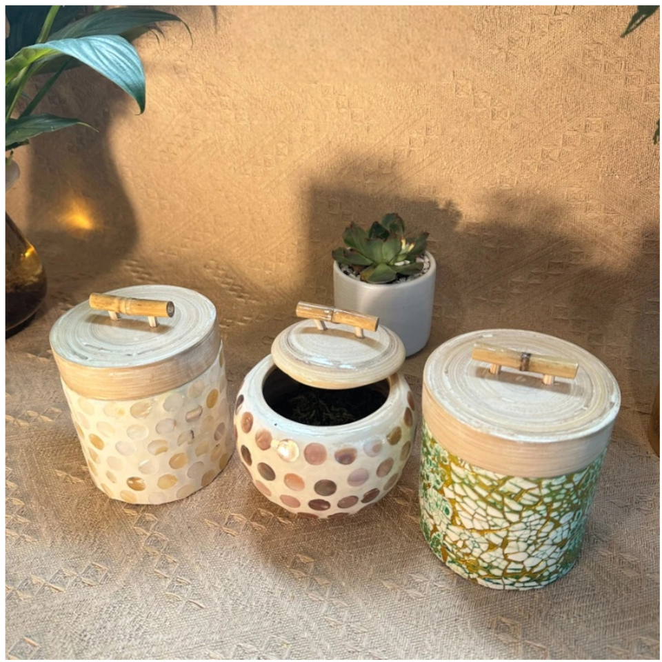 Product name:Bamboo Jar Mother of Pearl Inlaid for Tea