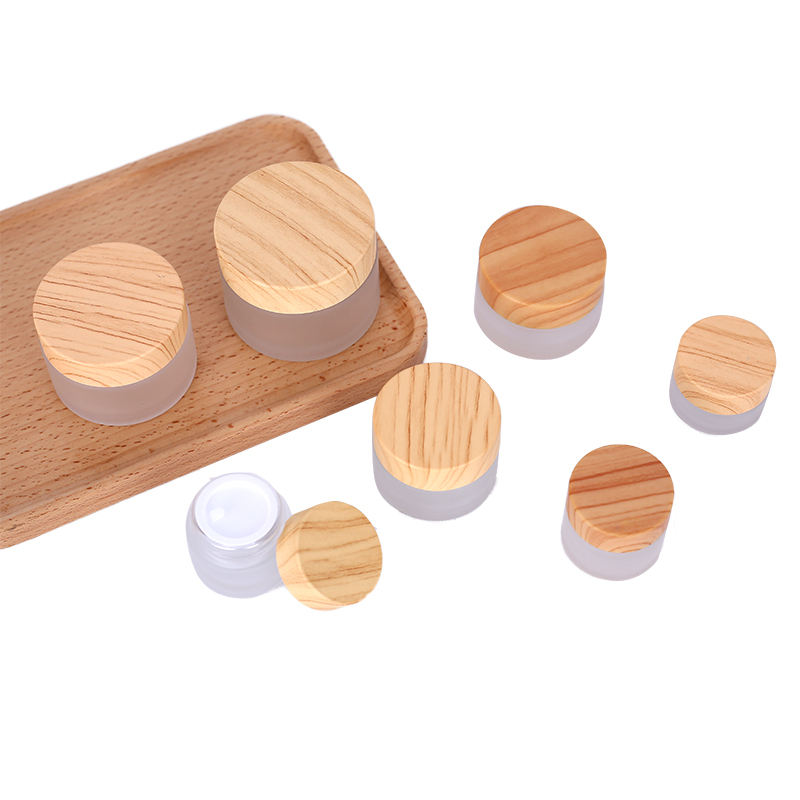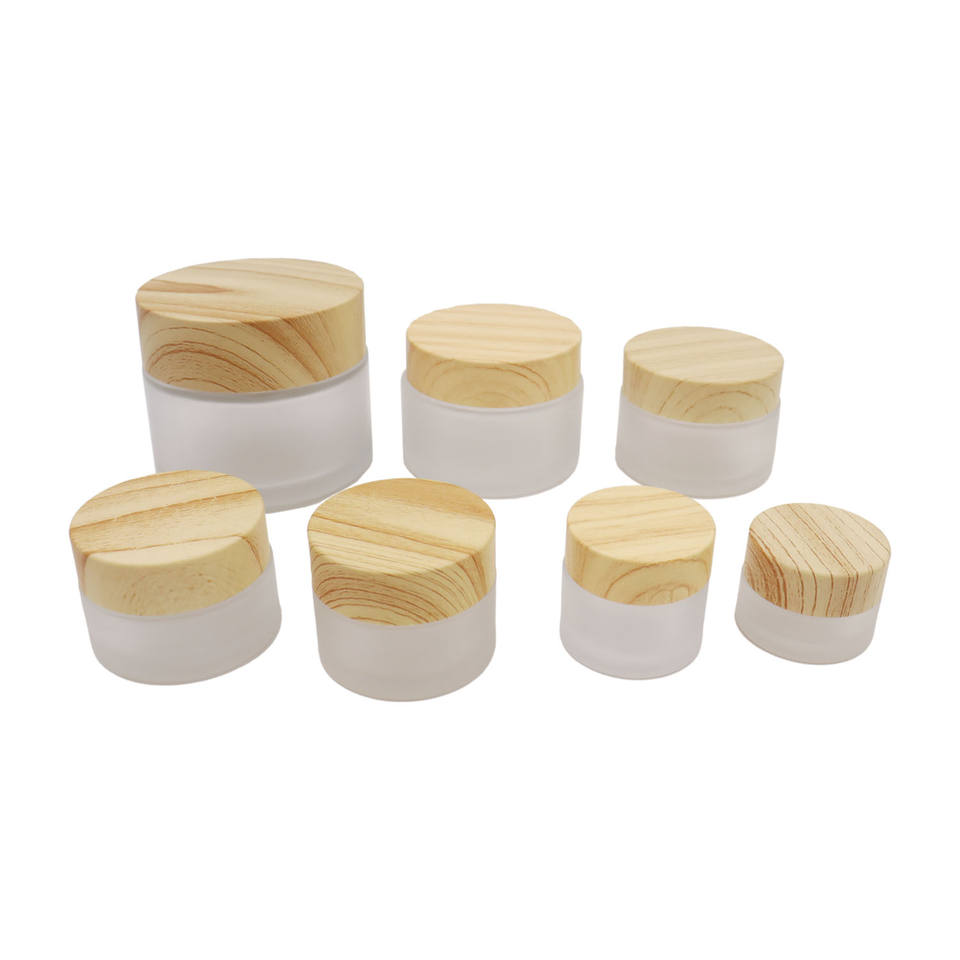 Eco Friendly Bamboo Plastic Wood Lid Custom 30g 50g 80g Frosted Cosmetic Glass Jar Packaging for Face & Cream