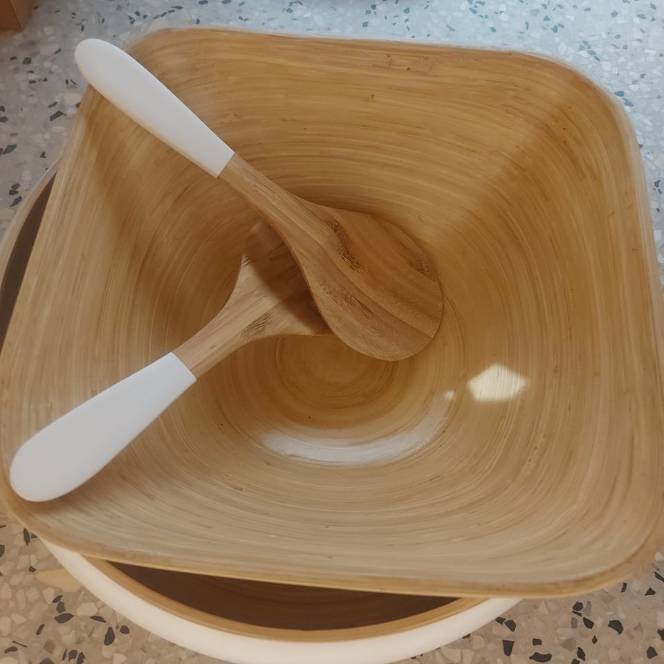 Eco-Friendly Bamboo Set of Salad Bowl and Salad Servers for Home and Restaurant Salad Bowl Mixing Bowls Made in Vietnam