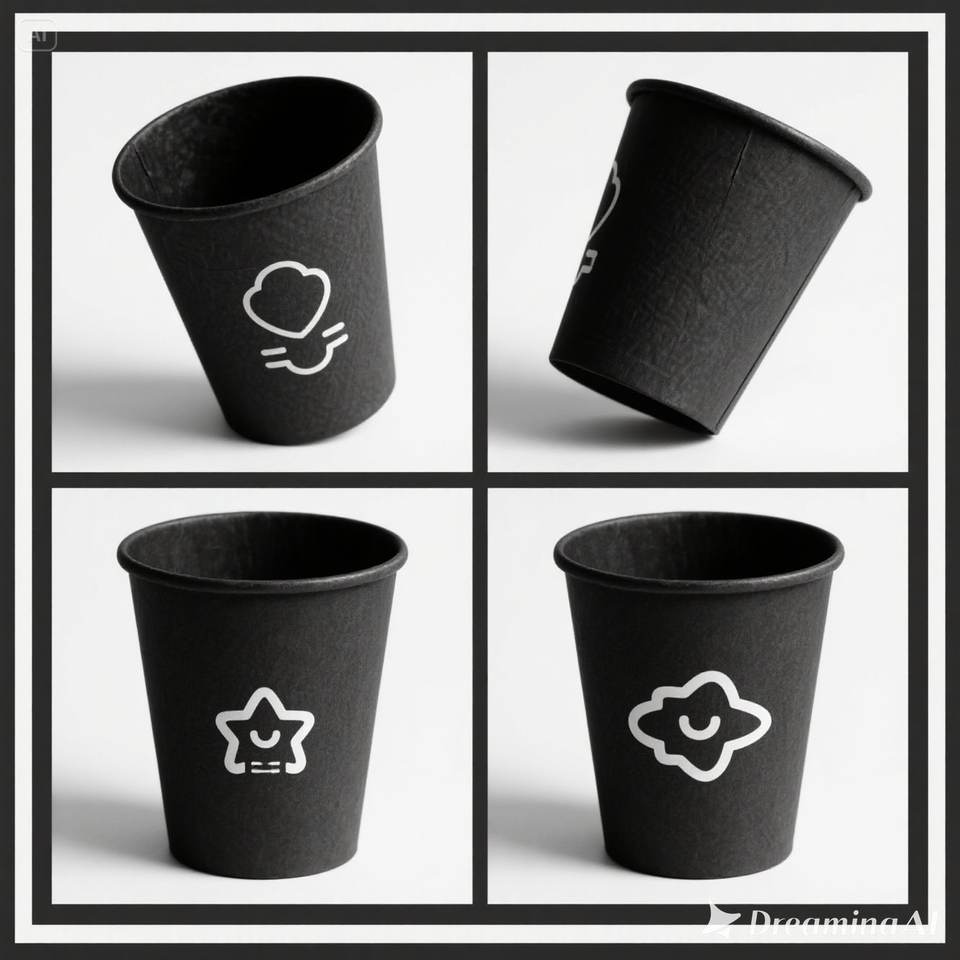Eco Friendly Black Paper Cup with White Printed Design 12 oz 100 Packs Disposable & Stylish