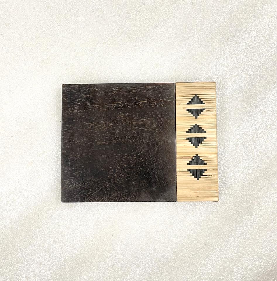 Eco Friendly Black Wood Hand Woven Wicker Cheese Board 10x8 Inch Square Rectangle Dishwasher Safe Home Kitchenware