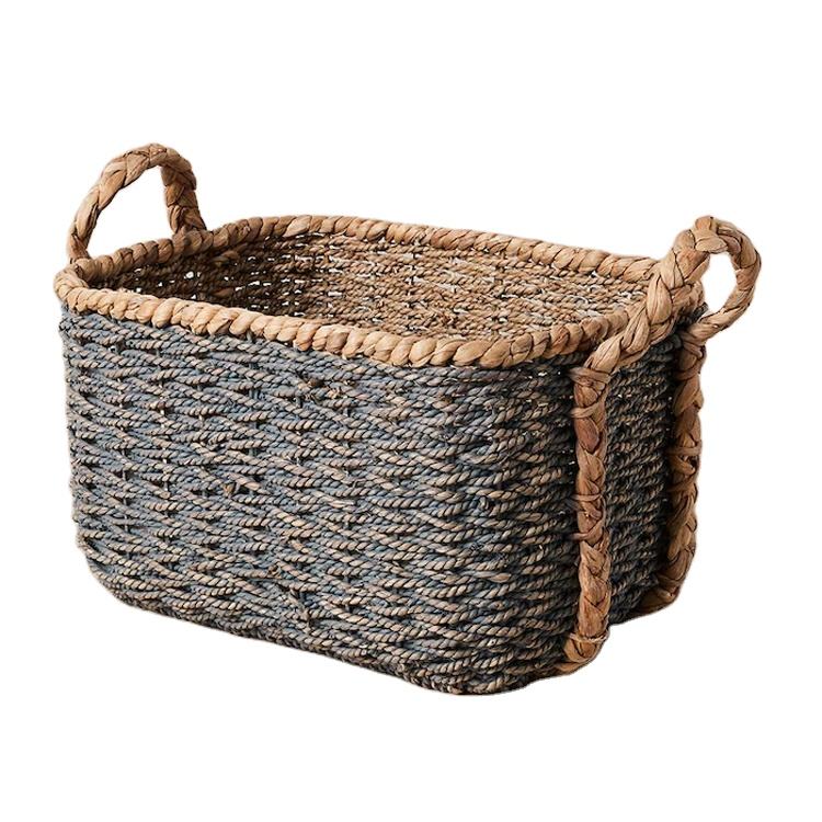 Eco-Friendly Blue Seagrass and Water Hyacinth Storage Basket with Handle Home Decor Item Vietnam Wholesale