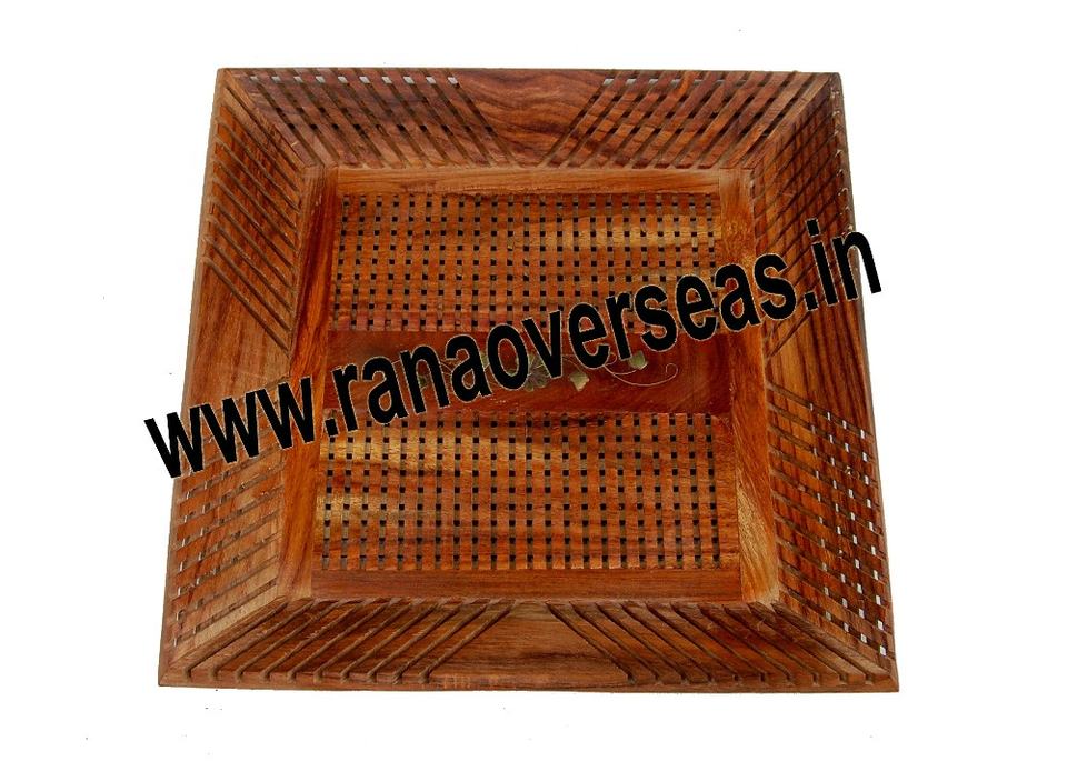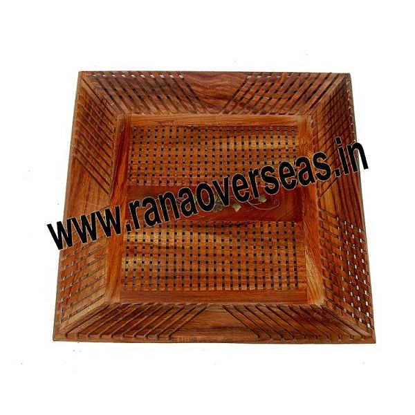Eco-Friendly Brown Wooden Serving Platter Polished Square Shape with Carved Design for Tea Coffee & Snacks
