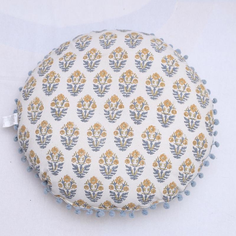 Eco Friendly Bulk Hand Block Print Round Shape Cushions Handmade Organic Cotton for Wholesale Sustainable Home Decoration Gifts
