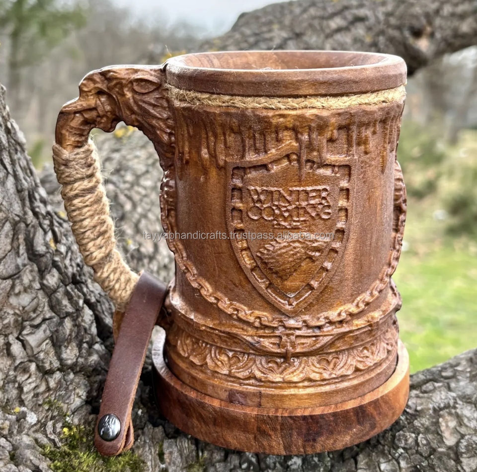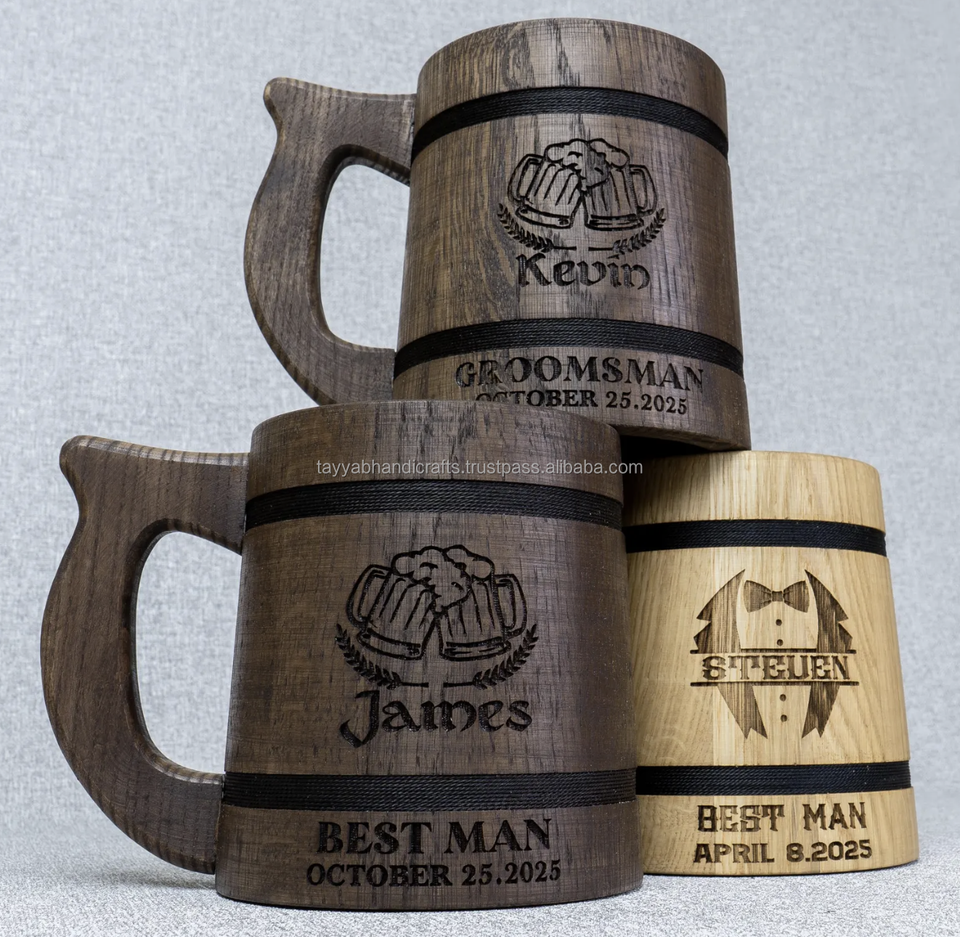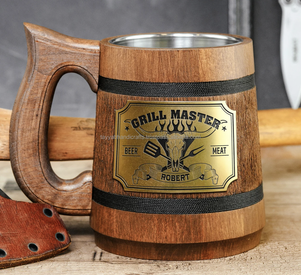Eco-Friendly Burnt Wood Beer Mugs Men's Engraved Camping Travel Outdoor Mug from India