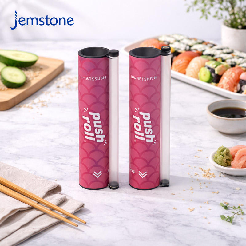 Eco Friendly Cardboard Paper Sushi Cylinder Push pop Roll Packaging Rigid Cardboard Food Grade Cylinder Push pop Sushi Container