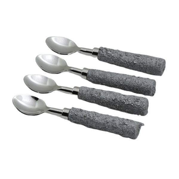 Eco Friendly Cement Concrete Handle & Stainless Steel Tea Spoon 4 Pcs Set for Restaurant Hotel & Table Top