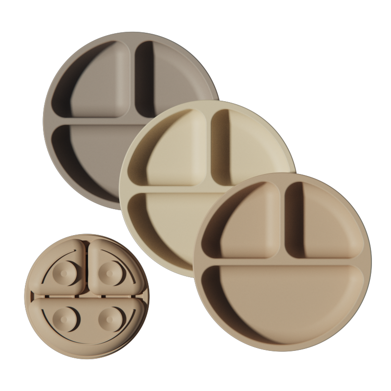 Eco Friendly Children Food Grade Separation Plate Tableware Cartoon Silicone Kids Baby Grid Feeding Bowl Spoon Plate Baby