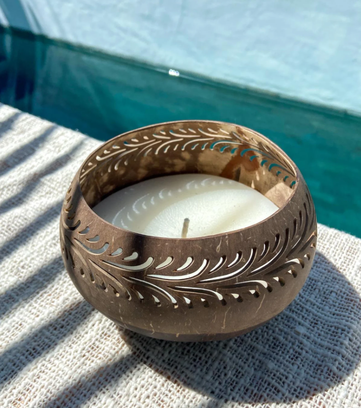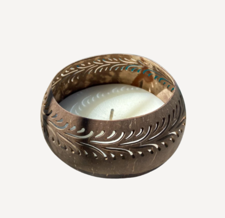 Eco Friendly Coconut Bowl Candle Holder with Intricate Hand Carved Design for Home Decor and Relaxation from Vietnam