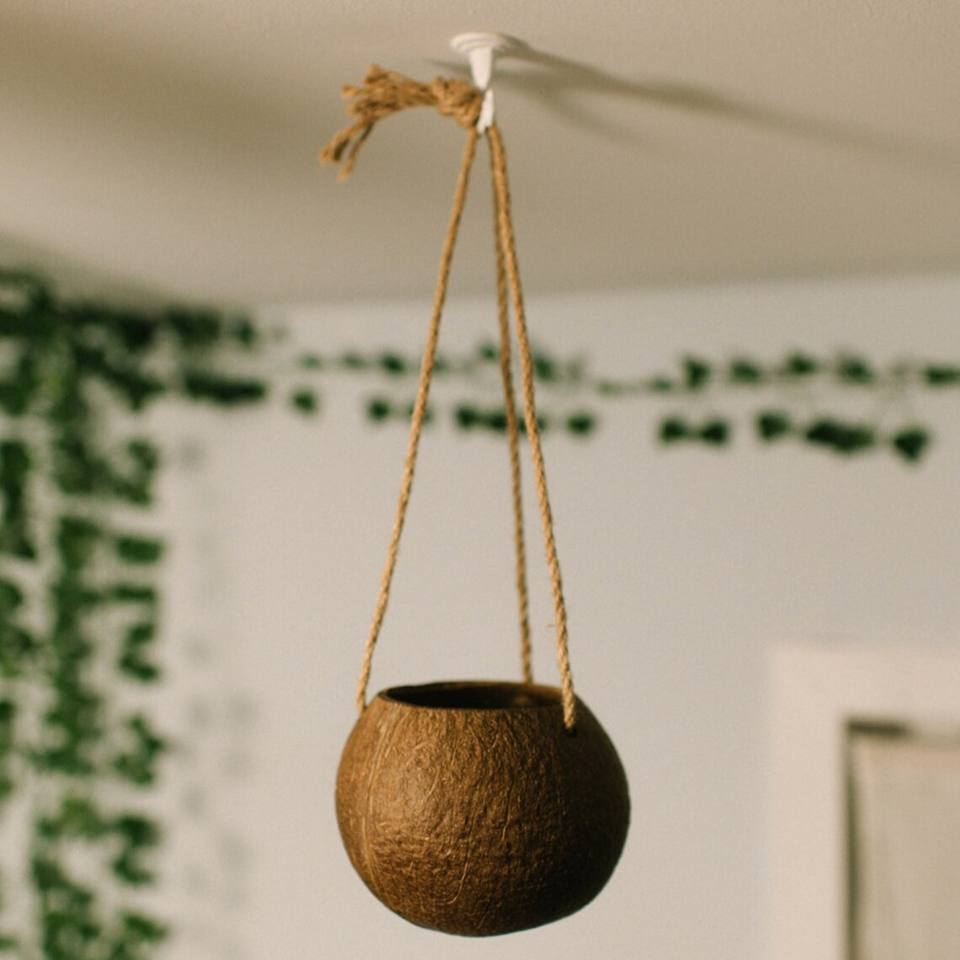 Eco Friendly Coconut Shell Hanging Pots Mini Flower Planters Made of Coco Shells