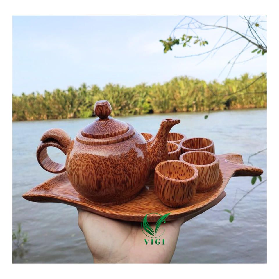 Eco Friendly Coconut Wood Teaware Set From Vietnam Ideal For Rustic Tea Lovers And Retail Resale