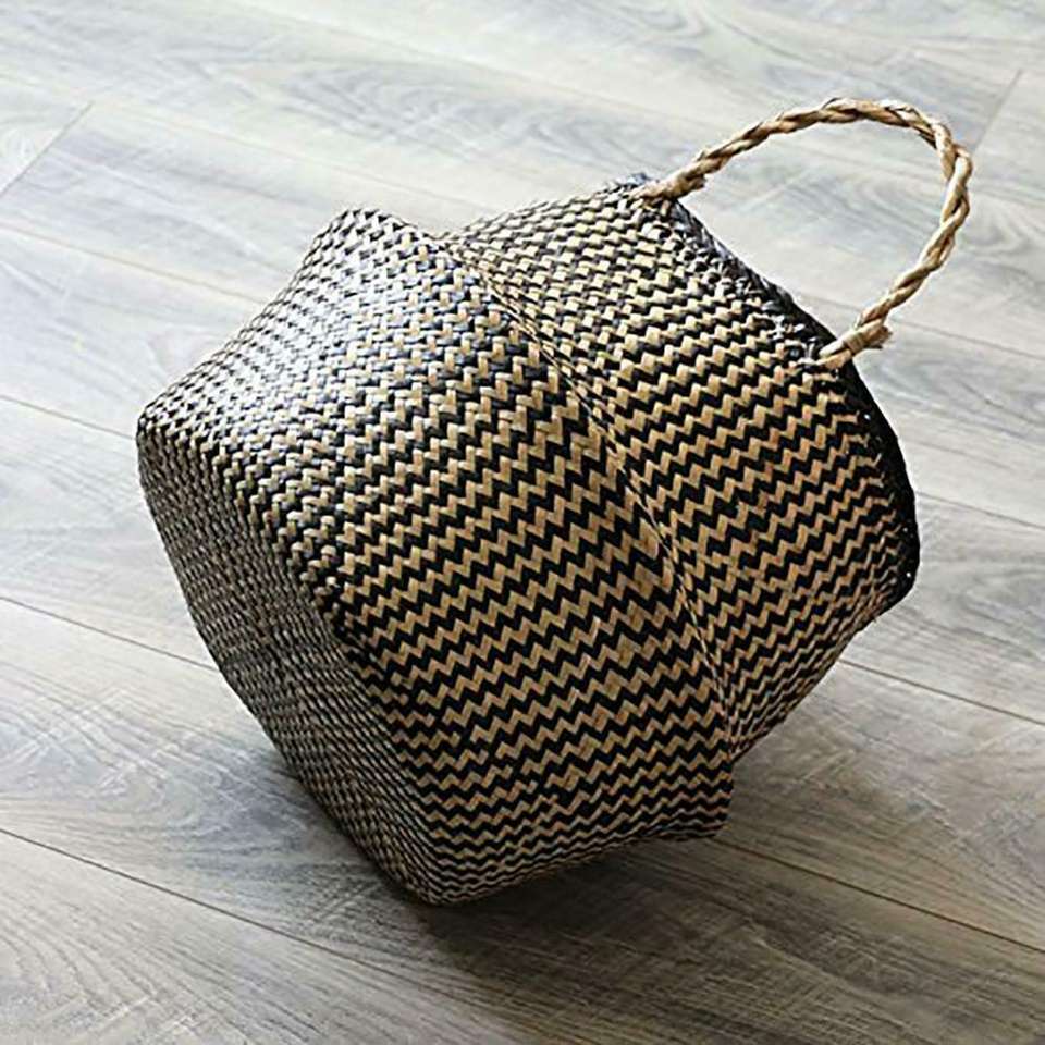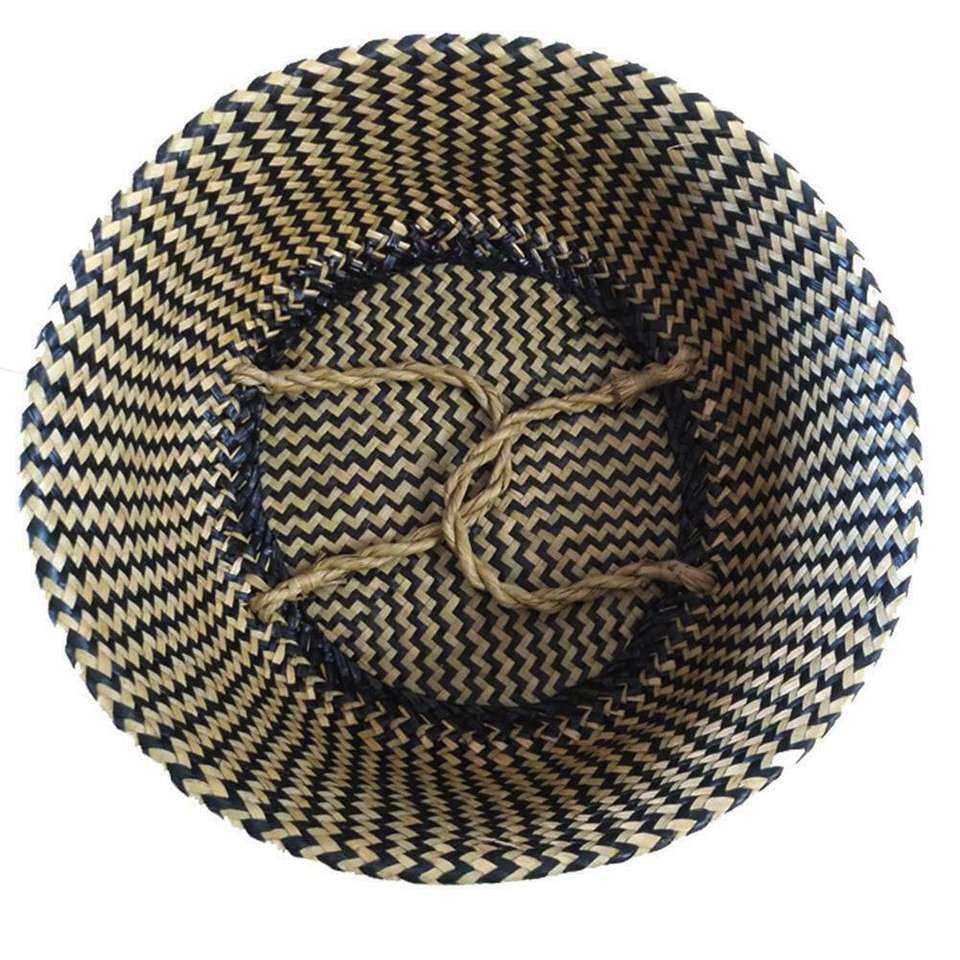 Eco-Friendly Colorful Handwoven Seagrass Basket Belly Pot Handle Foldable Laundry Basket Toys Storage Planter Woven Features