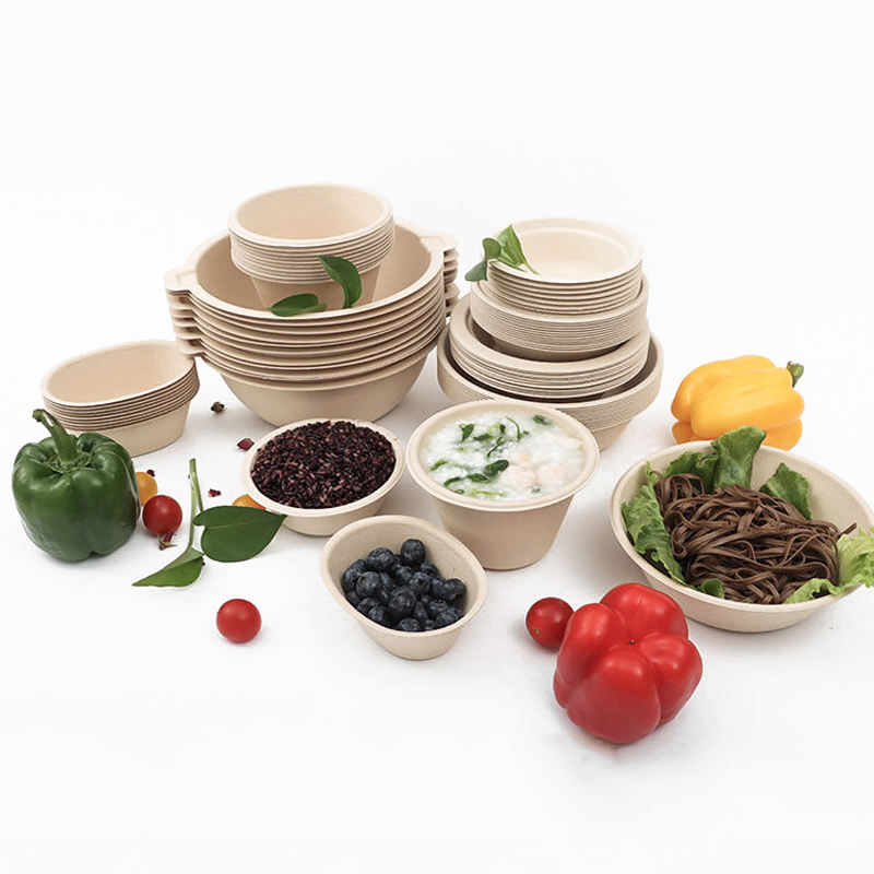 Eco-Friendly Compostable Biodegradable Disposable Bamboo Pulp Paper Plates Bowls Natural Color 6/7/8/9/10 Inches Party Supplies