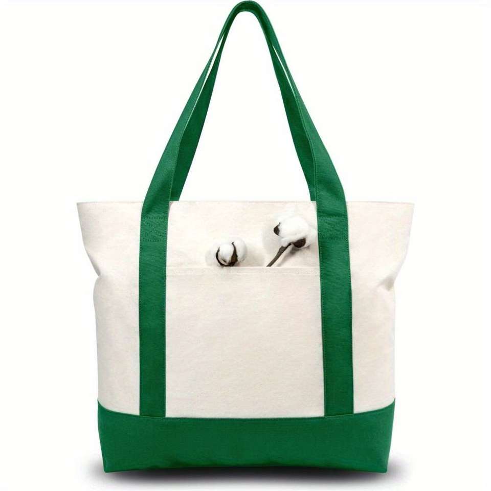 Eco-Friendly Cotton Canvas Two-Tone Tote Bag with Custom Logo Embroidery Handled Design for Travel & Outdoor Use