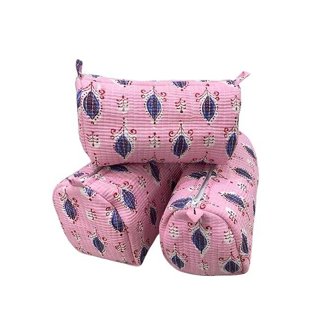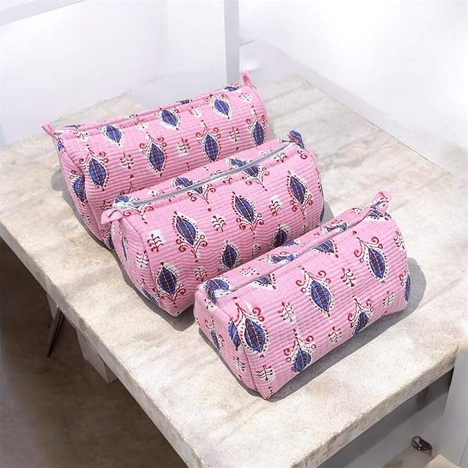 Eco-Friendly Cotton Cosmetic Pouch Set 3 Waterproof Zipper Machine Washable Travel Organizer Bags Makeup Jewellery Toiletries