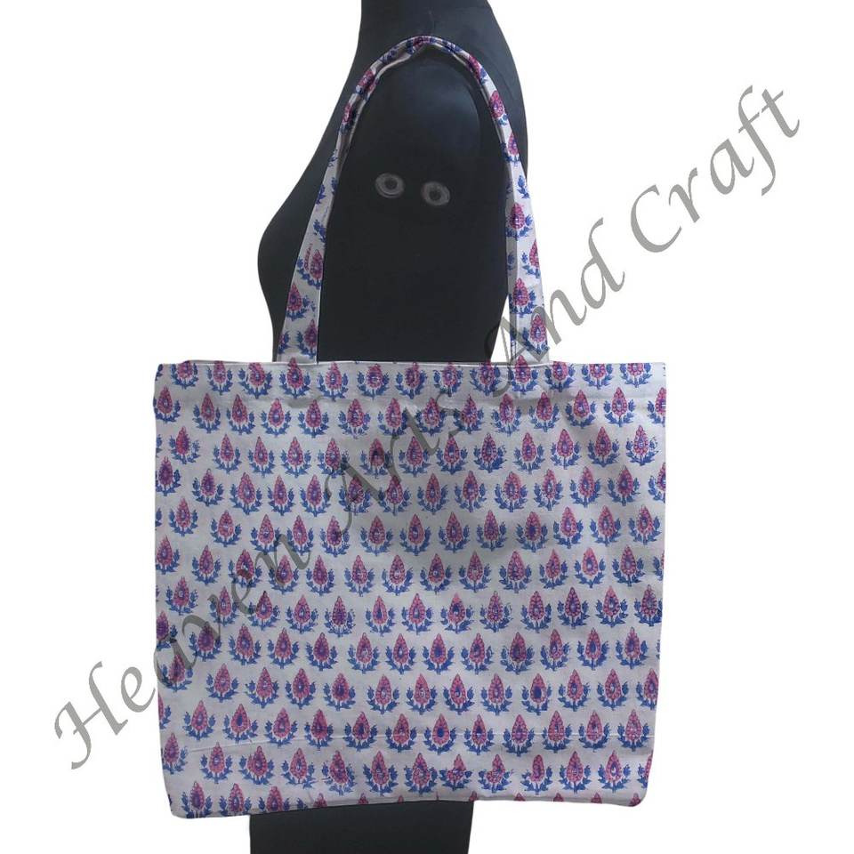 Eco-Friendly Cotton Square Tote Shopping Bag Customized Block Printed Shoulder Style Beach Usage Two Handles