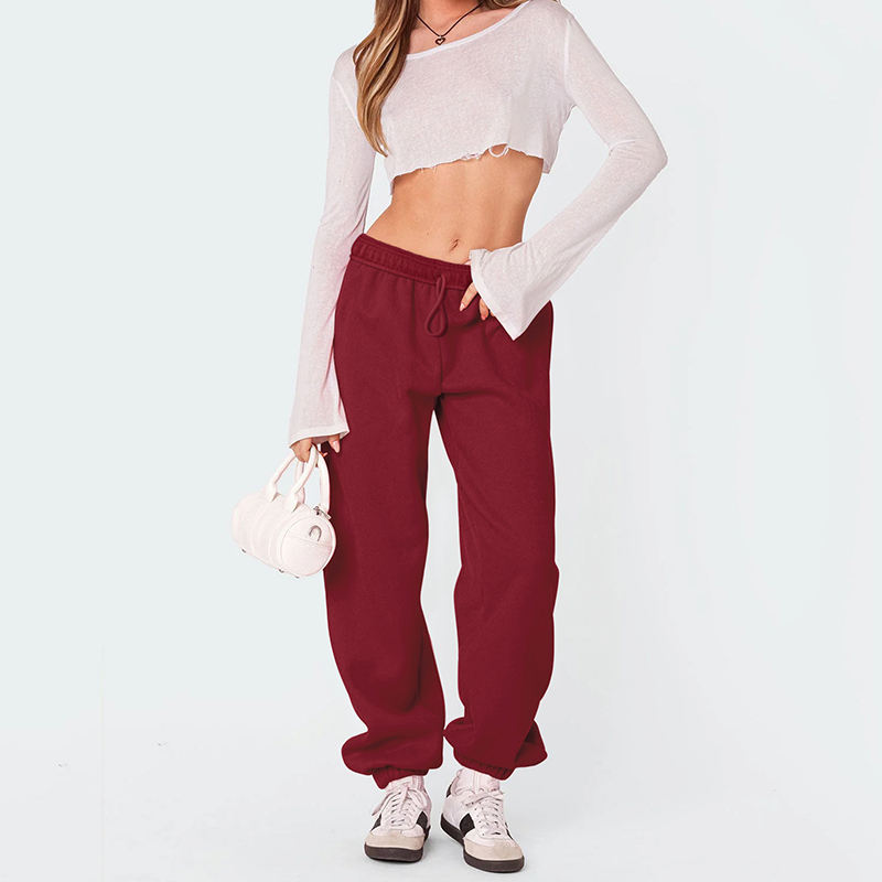 Eco-Friendly Cotton Women's Sweatpants Loose Fit High Rise Joggers Drawstring Waist Solid Color Dyed Women Sweatpants