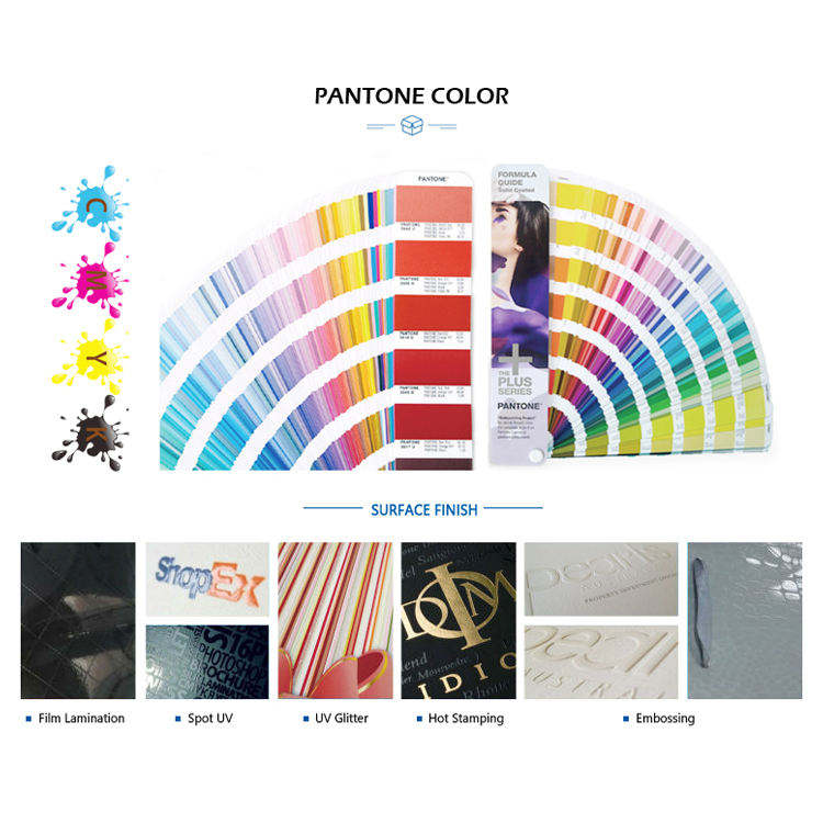 Printing Handling:Embossing, Glossy Lamination, Gold Foil, Matt Lamination, Silk Screen Printing, Stamping, Varnishing