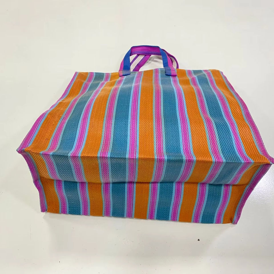Eco-Friendly Custom Handloom Recycled Beach Cosmetic Bags Fashionable Woven Plastic Striped Shopping Cases with Reusable Zipper