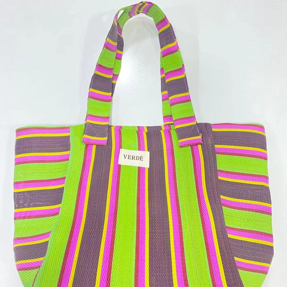 Eco-Friendly Custom Reusable Zipper Plastic Woven Striped Beach Cosmetic Bags Handloom Made Recycled Shopping Cases Fashion