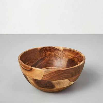 Eco-Friendly Decorative Wooden Salad Serving Bowl with Custom Logo for Party and Home Use