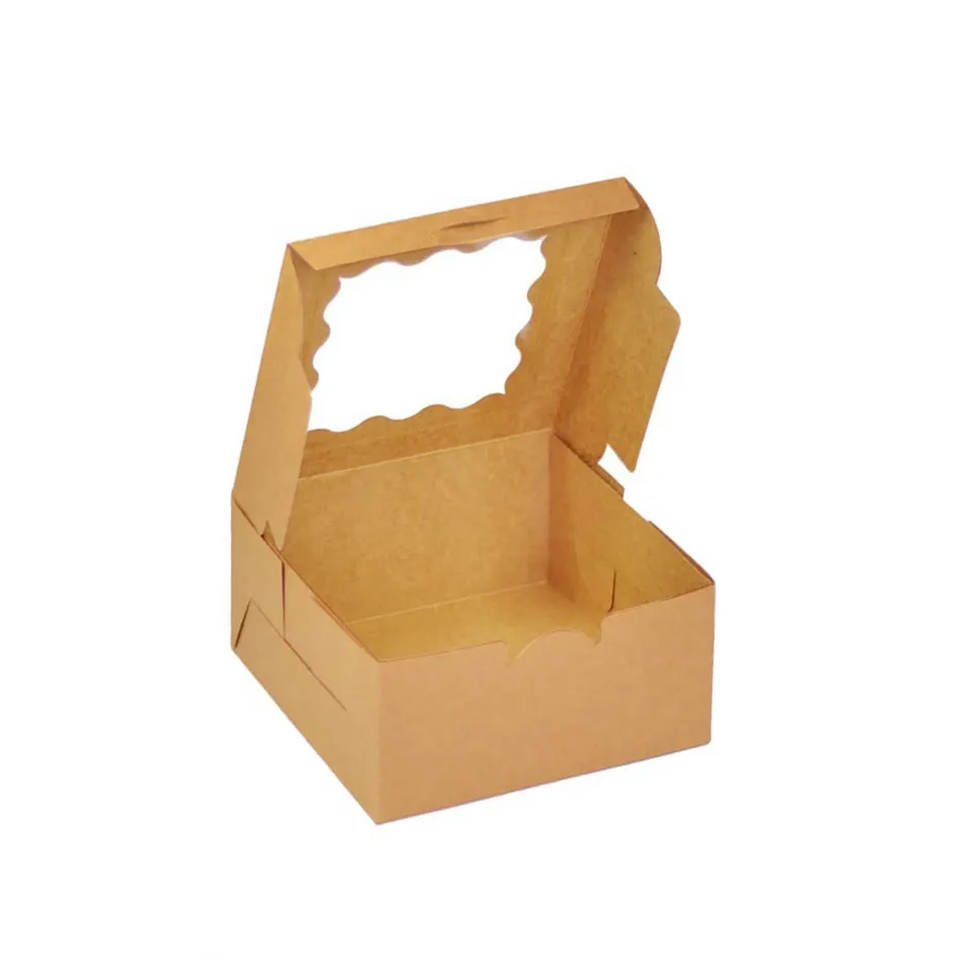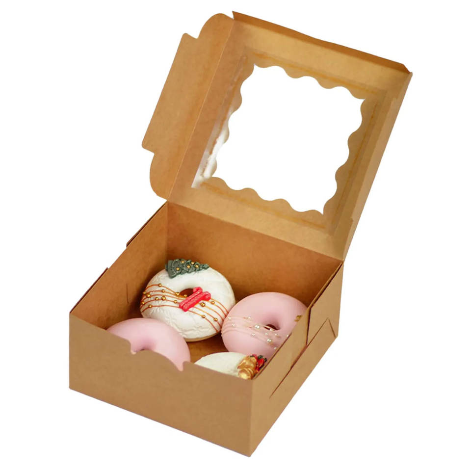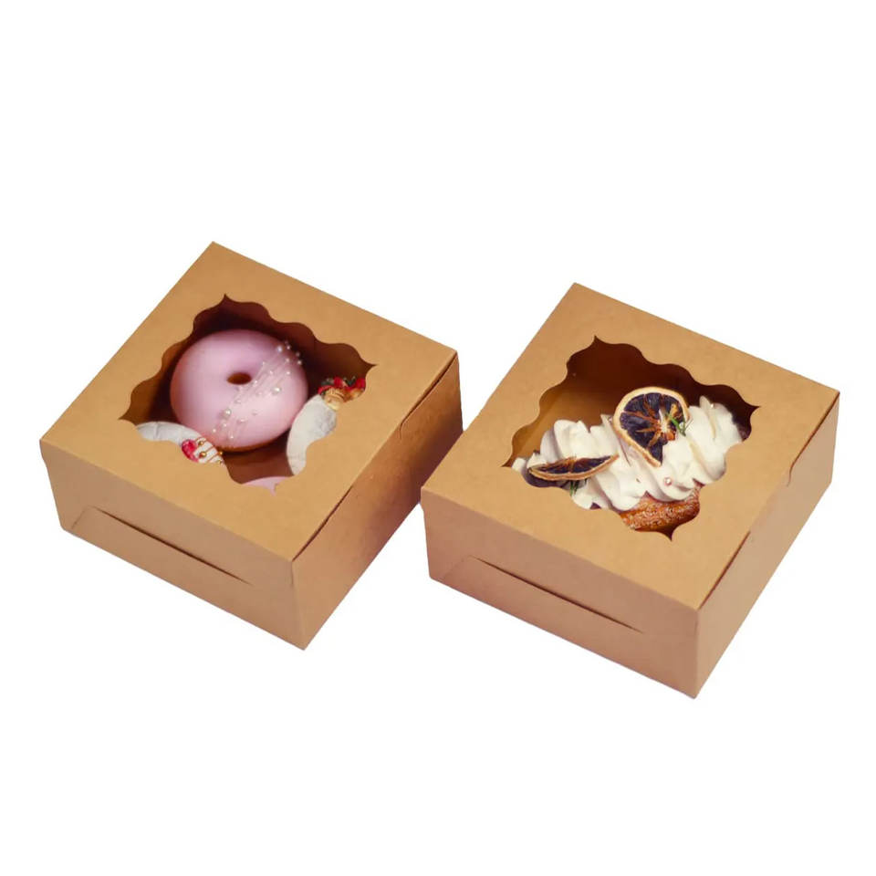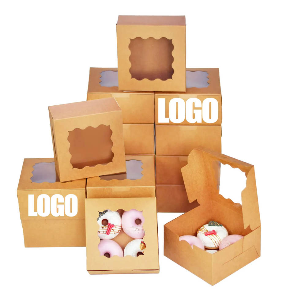 Eco Friendly Degradable Natural Brown Kraft Paper Candy Box with Clear Window Food Grade Packaging Cookies Chocolates Gourmet