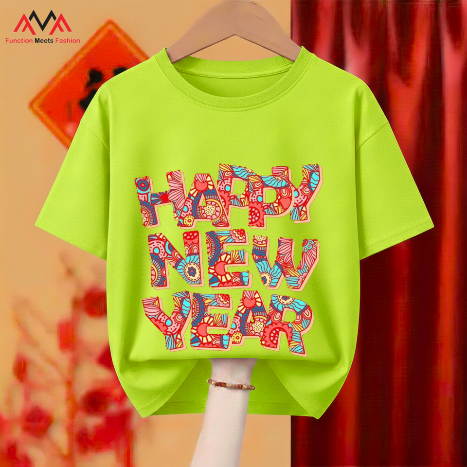 Eco-Friendly Digital Regular Short Vietnamese Casual / Streetwear / Beachwear Lime Green T-Shirt O-Neck (Crew Neck) Lunar Tet