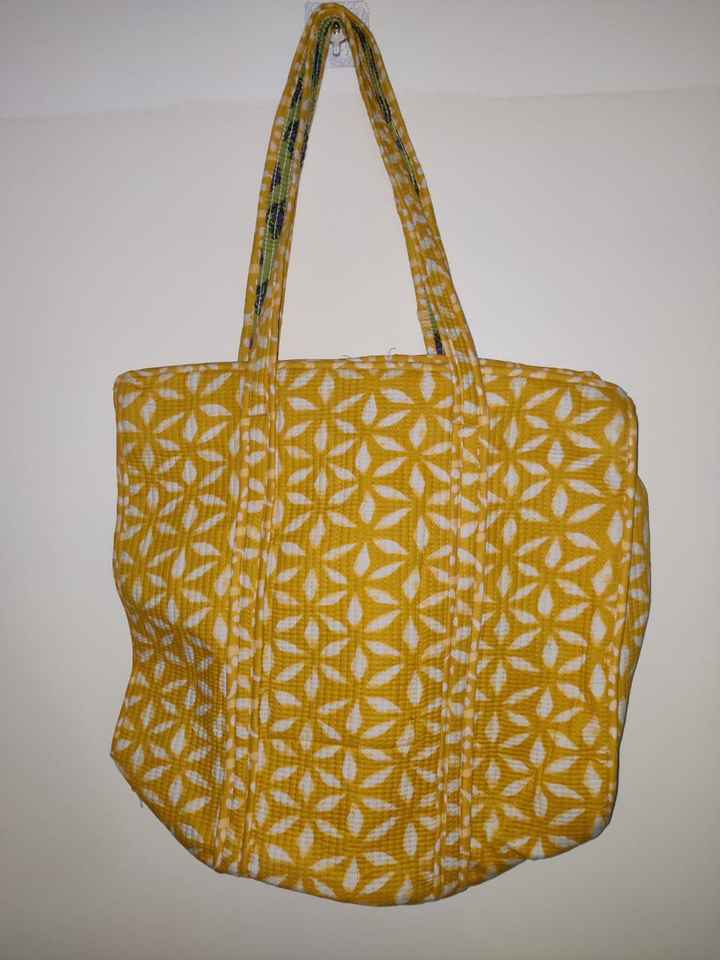 Eco Friendly Floral Cotton Lightweight Beach Shopping Bag Handmade Block Print Quilted Tote Bag with Handy Inside Pocket