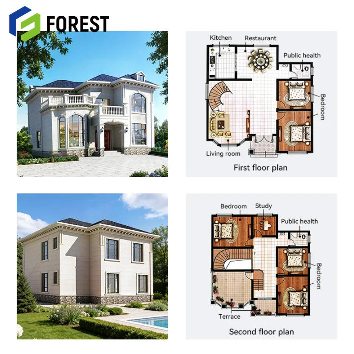 Eco Friendly Green Light Steel Villa Sustainable Prefab House Modern Luxury Design Aluminum Alloy Doors Windows 5-Year Warranty