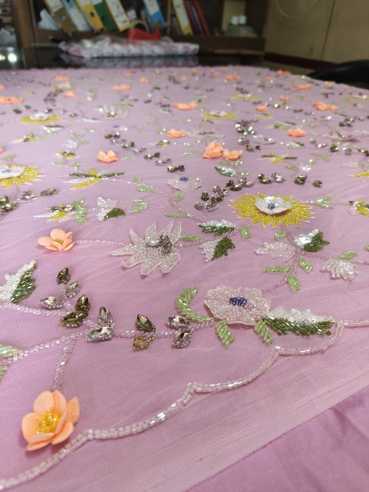 Eco-Friendly Hand Beaded Embroidered Cross-Style Woven Accessory Weft Knitted Heavyweight Thickness