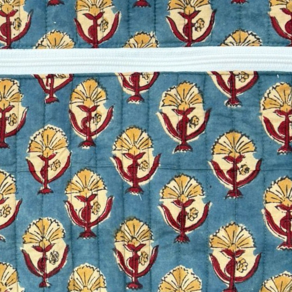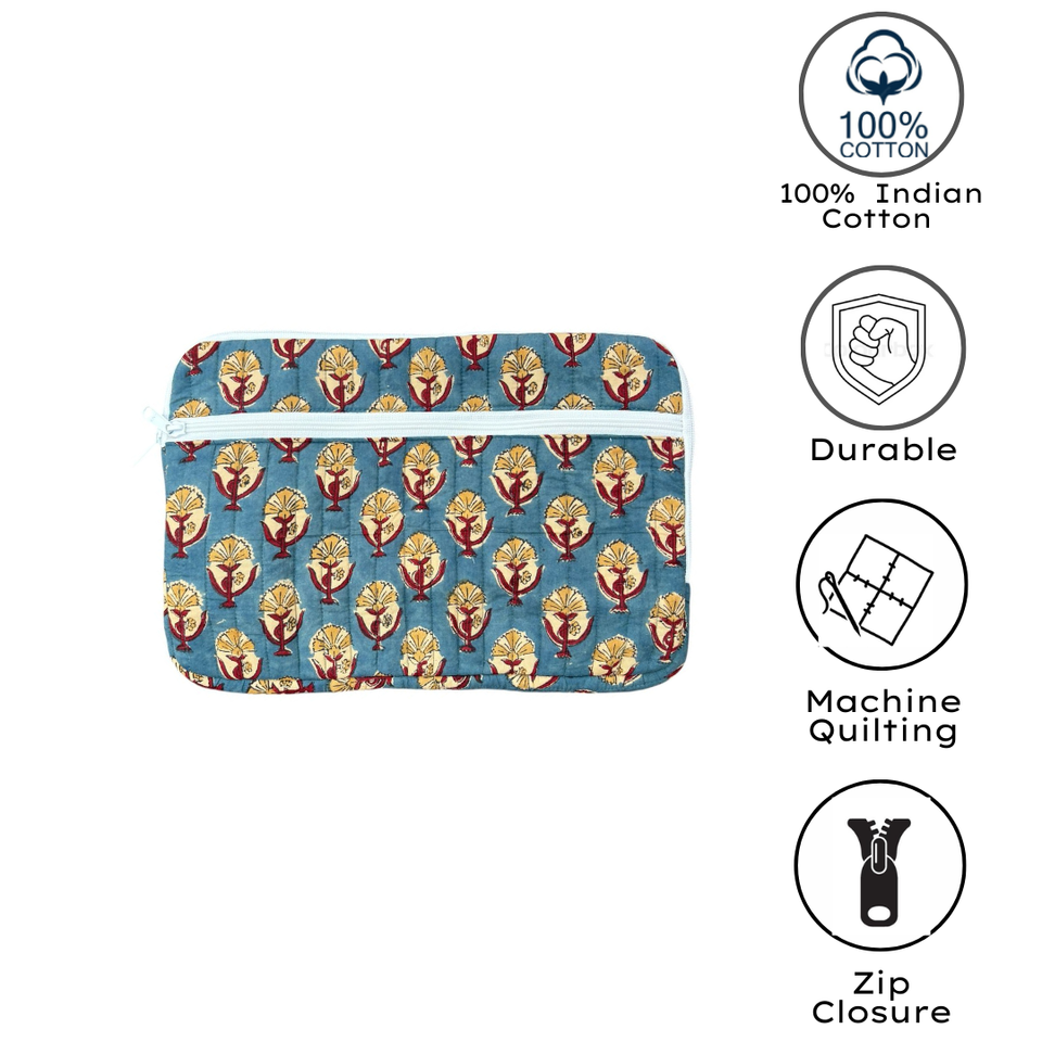 Eco Friendly Hand Block Printed Cotton Quilted Laptop Sleeve Laptop Protector Multi Pockets Zip Closure Lightweight Office use
