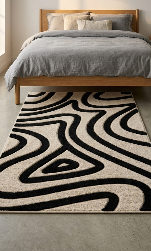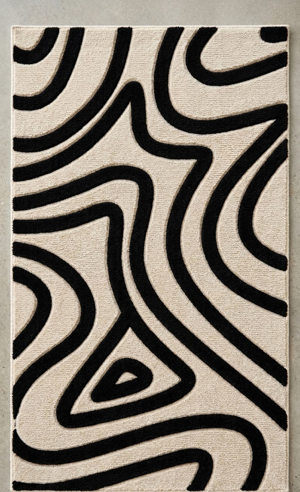 Eco-Friendly Hand-Tufted Wool Rug | Abstract Green & Beige Flowing Line Carpet Home Decor Gift Factory Price