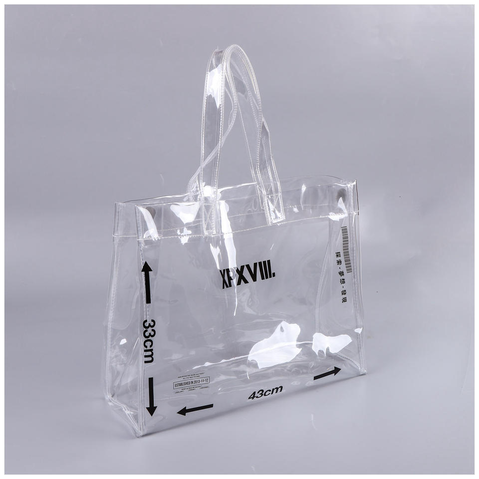 Eco Friendly Handbag clear Transparent PVC Bag Gift and Promotional with Handle and Button