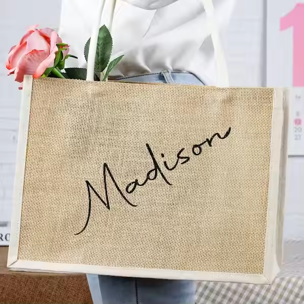Eco Friendly Handbags Tote Grocery Shopping Tote Bag Personalized Jute Bag for Personalized Bridesmaid Gifted Bag